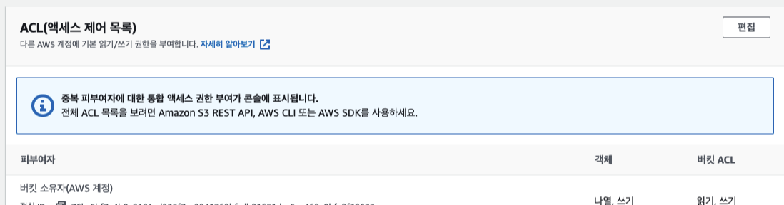 S3 에 이미지가 업로드 되지 않는 문제가 발생했다. 해결 방법은 S3 ACL 을 활성화하고, 다른 AWS 계정에도 기본 적인 읽기/쓰기 권한을 부여하는 방식이었다.