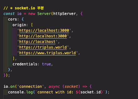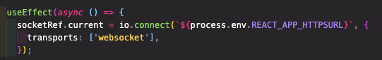 - transports 로 websocket 을 해주었다.