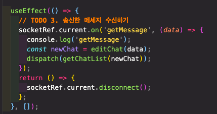 조금 더 스마트한 방법이 없을까 고민했는데, 번뜩였던 게 이전 SVG 태그를 사용하면서 발생했던 에러를 해결했던 경험이었다. 이전에 SVG 태그를 useRef 로 참조하고 있었을 때 다른 페이지로 넘어가면 에러가 발생하는 현상이 있었다. 그 문제를 해결하기 위해서 처음에는 document 로 직접 DOM 에 접근을 했었는데, 이후 리팩토링하는 과정에서 useEffect cleanup 함수를 이용해 useRef 와 SVG 사이의 연결을 끊어버리는 로직을 작성하도록 만들어 에러를 해결했었다. socketRef, 이것도 마찬가지로 useRef 를 활용한 것이다. 설마 해서 cleanup 함수에 연결을 끊는 로직을 작성하니, 원하는대로 다른 페이지로 넘어가게 되면 연결은 끊었다.