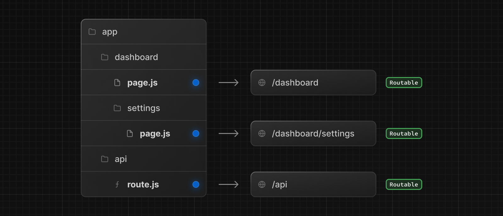 app 디렉토리에서는 중첩된 폴더 계층 구조가 실제 경로를 정의한다.