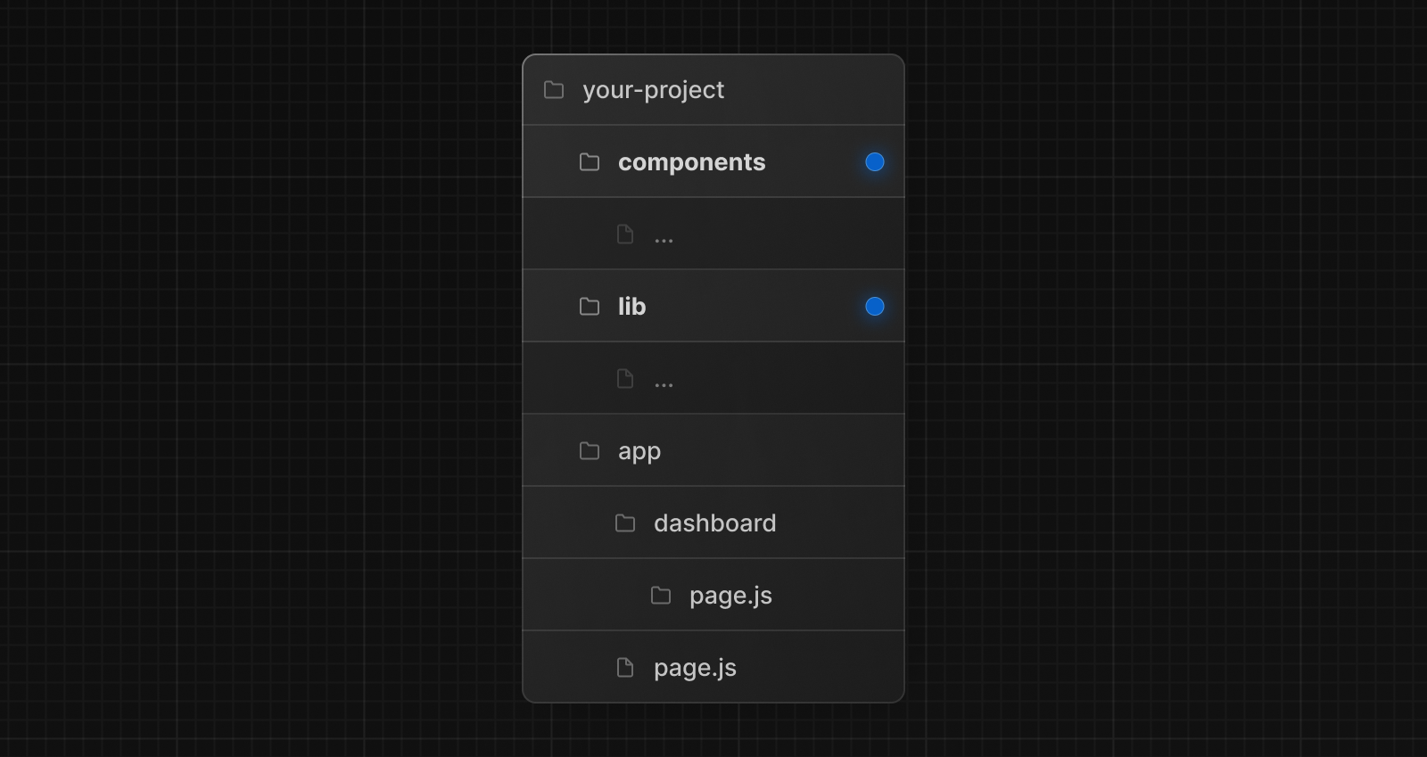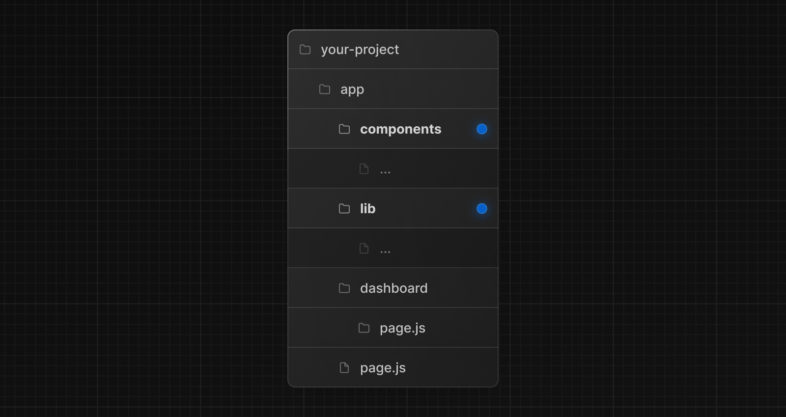 아래 예제에서는 `components`, `lib` 은 placeholder 같은 것으로, 이름은 `ui`, `utils`, `hooks`, `styles` 와 같은 것으로 사용해도 된다.
