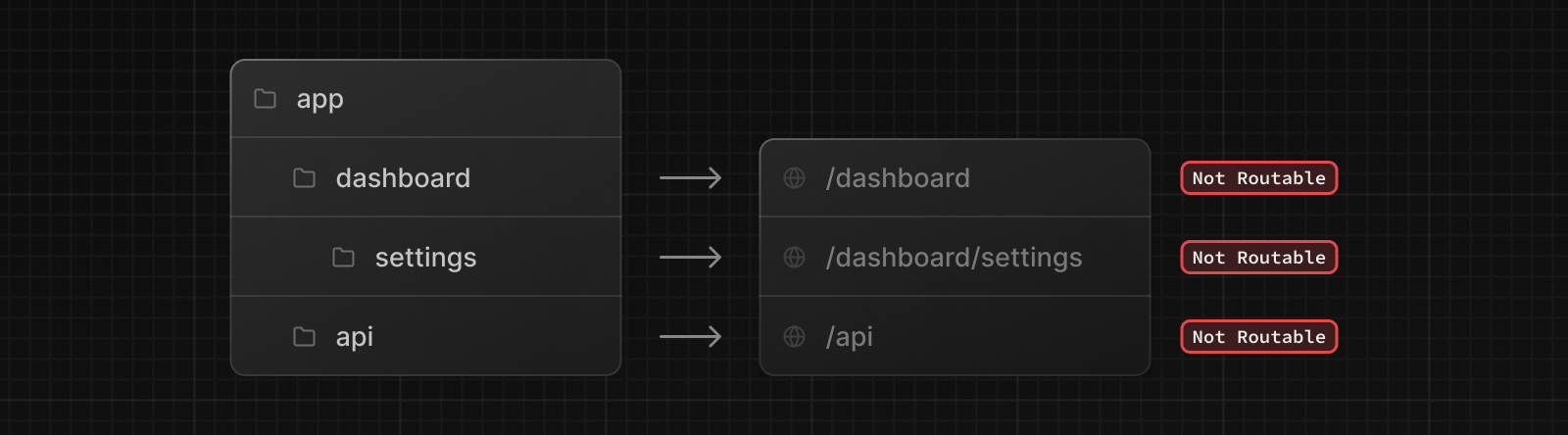 하지만 이 경로 구조가 폴더로 정의된다 하더라도, 실제 해당 경로는 page.js 파일이나 route.js 파일이 없으면 사용자에게 공개되지 않는다.