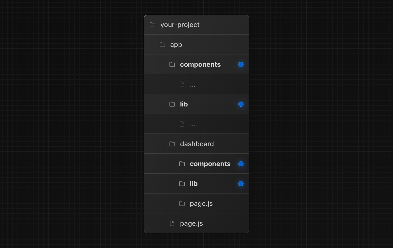 이 전략은 어플리케이션 코드를 프로젝트 루트에 있는 공유 폴더에 저장하여 app 디렉토리를 순수하게 라우팅 용도로 유지하는 것이다.